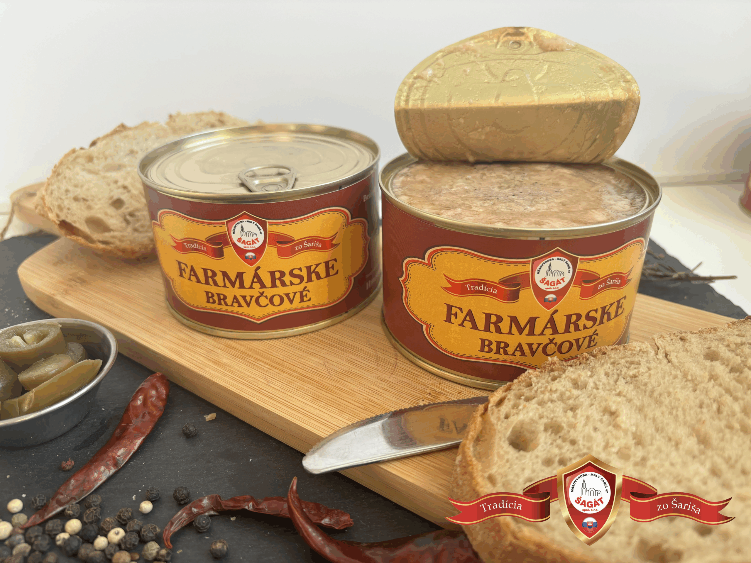 Naše Produkty Konzervy Farmárska paštéta 200 g Kúpiš tu Farmárska jemná paštéta 200 g Kúpiš tu Farmárska nátierka 200 g Kúpiš tu Farmárske hovädzie mäso 400g Kúpiš tu Farmárske bravčové mäso 400 g Kúpiš tu Farmárske klobásová zmes 400 g Kúpiš tu Údená lahôdková krkovička 400g Kúpiš tu